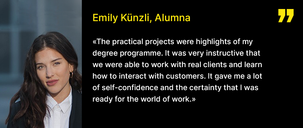 The BSc Business Administration (International Management) programme at the FHNW School of Business emphasises practical relevance, providing you with real-world insights into the working environment during your studies. This is achieved through group projects with industry partners, your Bachelor's Thesis and the “Work Experience” modules designed especially for part-time working students. These hands-on experiences will equip you with valuable skills, enhance your understanding of business practices, and prepare you for future career success