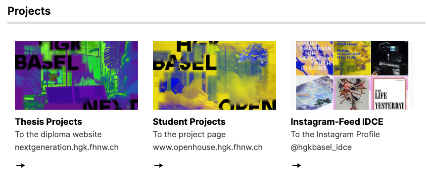 The Digital Communication Environments master’s programme is geared towards students who already have a bachelor’s degree from an art or design university (e.g. Visual Communication, Communication Design, Media Design, Graphic Design, Photography) or a bachelor’s in a cultural studies field (e.g. Art History, Media Science). The objective consists of combining design practices in digital communication environments with practically oriented research approaches and theories in the field of Visual and Media Studies. It is the only Master of Arts in the design field in Switzerland that has 120 ECTS credits and thus meets the formal requirements for a PhD.