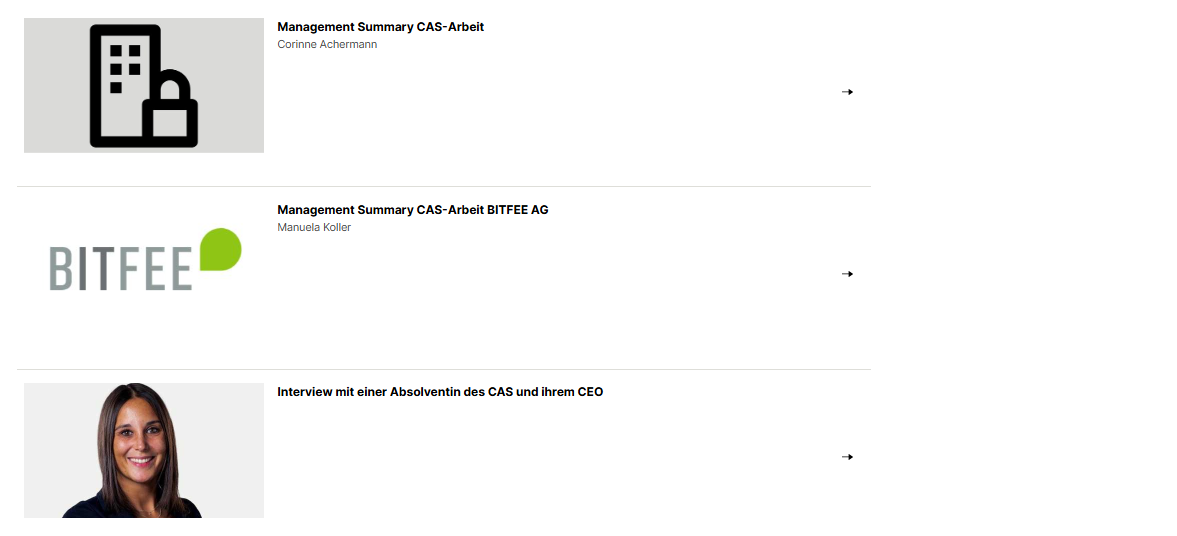 Die Fachkurse können einzeln besucht werden. Der CAS-Abschluss wird erlangt, wenn alle vier Fachkurse, inklusive der Projektarbeit, erfolgreich abgeschlossen sind.