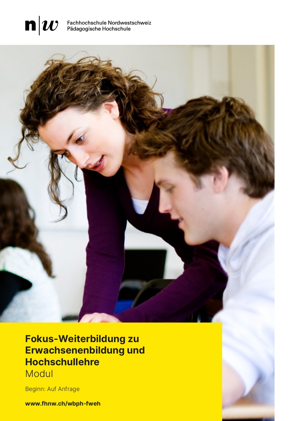 Die Angebote der Fokus-Weiterbildung zu Erwachsenenbildung und Hochschullehre sind Bestandteile des Weiterbildungsmasters MAS «Erwachsenenbildung und Bildungsmanagement» der Pädagogischen Hochschule FHNW und der Hochschule für Wirtschaft FHNW (60 ECTS-Punkte).